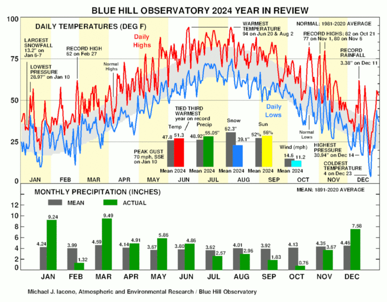 Blue Hill Observatory January 2025 Summary: January temperature was cooler than average with less rain and snow and much more sunshine than…