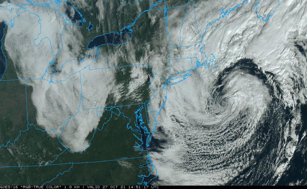 October was very warm and much wetter than average. The 24-hour adjusted mean temperature for the month of 56.3 deg F was 5.0 degrees warmer than the 1891-2020 130-year average for October, and it was 4.1 degrees warmer than the 1991-2020 30-year average. The month was the sixth warmest October on record and the warmest since 2017. The average maximum temperature of 64.1 deg F was 3.5 degrees warmer than the 130-year mean. The average minimum temperature of 49.4 deg F was 5.8 degrees warmer than the 130-year mean, and the average minimum was the third warmest on record. Only nine days during the month were cooler than average. The highest temperature observed all month was 75F on the 13th, and the lowest temperature during October was 37F on the 24th and 29th. The low temperature of 37F on the 24th tied as the latest date on record of the first fall temperature below 40F. The mean water vapor pressure during the month was 12.9 mb, which reflected the high level of moisture in the air during October and was the second highest on record for the month. October total precipitation was 7.87 inches, which was nearly four inches more than the 130-year average and two and a half inches more than the 1991-2020 30-year mean. October was the 11th wettest on record. Most of this rainfall occurred during three rainfall events, including 2.08 inches on the 3rd-5th, 2.38 inches during a strong coastal storm on the 26th-27th that also brought damaging winds to eastern MA, and 1.69 inches on the 30th-31st. The heaviest rain occurred in the early evening of the 30th with 0.52 inches in the hour from 5-6 PM EST. The greatest rainfall in 24 hours for October was 2.23 inches on the 26th. There were no thunderstorm days during October. The mean wind speed for the month was 11.4 mph, which was the third lowest on record, and the prevailing wind direction was from the west-northwest. The highest wind gust was 66 mph from the NNE during the strong coastal storm on the morning of the 27th. October sunshine was below average with 174.9 hours of bright sunshine, which was 53 percent of the possible sunshine and two percent less than the 130-year mean.